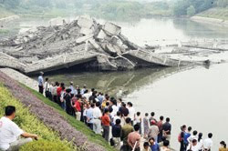 ชาว บ้านในเมืองเหอเฝ่ย มณฑลอันฮุย ฝั่งตะวันออกของจีน เฝ้าดูการระเบิดสะพานทิ้ง รัฐบาลจีนเห็นว่าผู้รับเหมาสร้างสะพานหลายแห่งโลภมาก กินงบประมาณจนทำให้โครงสร้างไม่ได้มาตรฐาน ต้องทำลายทิ้งเพื่อป้องกันอุบัติเหตุ เมื่อ 20 ก.ย. (เอเอฟพี)